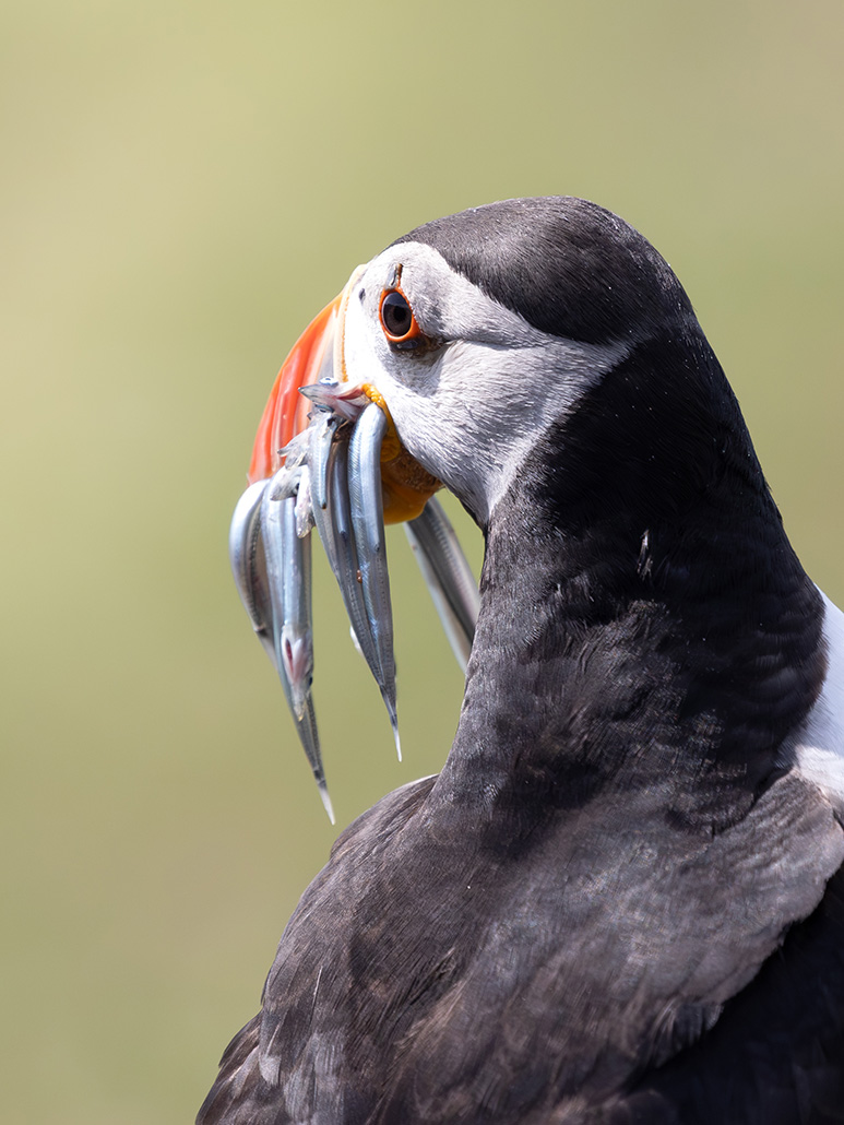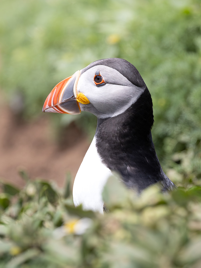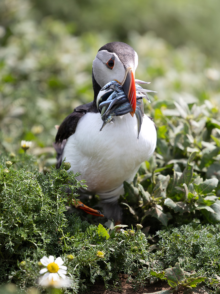 And then… the puffins. These little birds are utterly charming, waddling about with sand eels in their beaks, peering out from burrows, or launching themselves into the air with surprisingly fast wingbeats. They’re so full of character, and incredibly unbothered by humans; some were flying right past us as they returned to their nests.