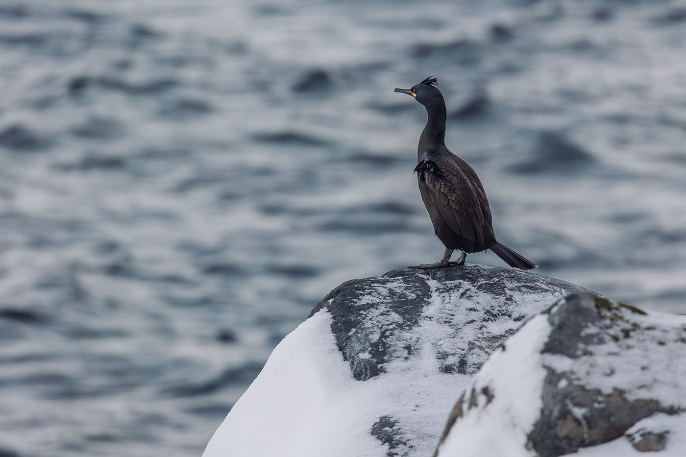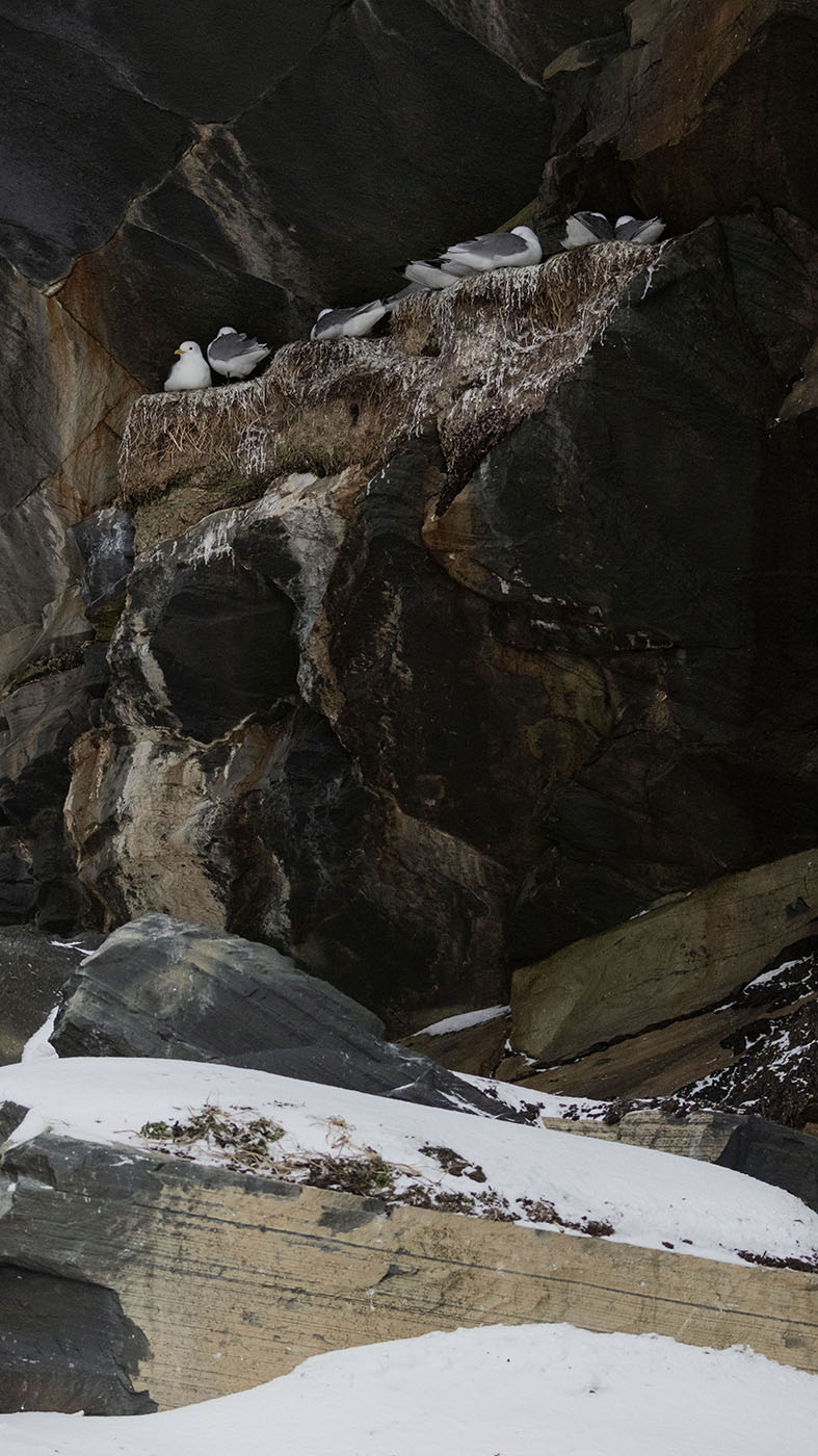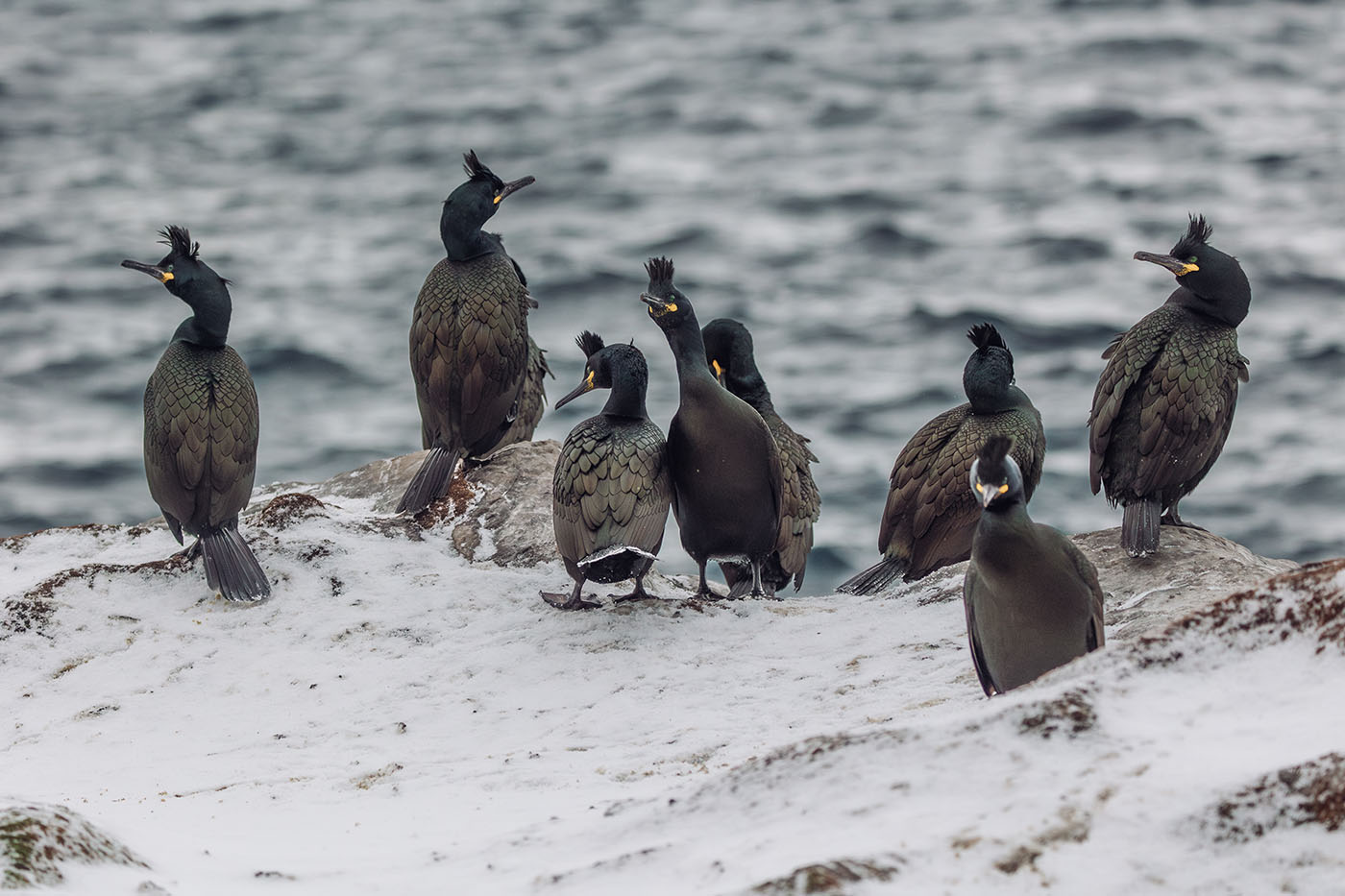 I took these photos in winter on Hornøya Island near Vardø, where snow, strong winds, and the wild Arctic coast set the scene. Shags crowded the rocky cliffs, their dark shapes clear against the snowy rocks, while kittiwakes flew through the cold air above the sea. Seeing the birds shelter, rest, and take off in such tough conditions reminded me how resilient they are. These images show quiet moments of life carrying on at the edge of winter.
