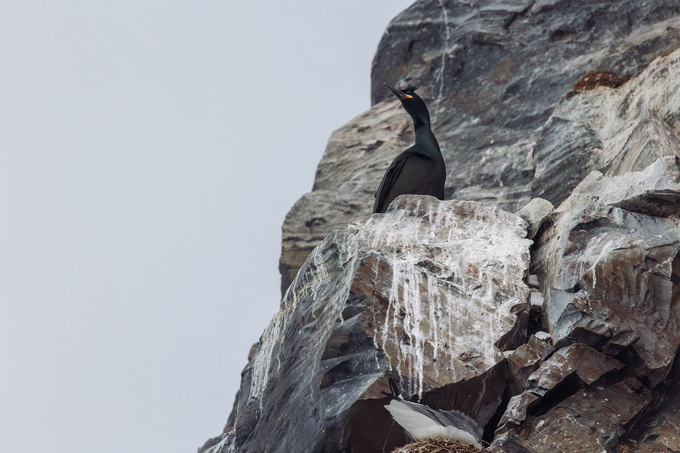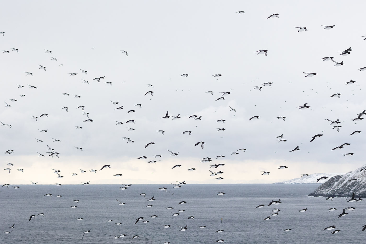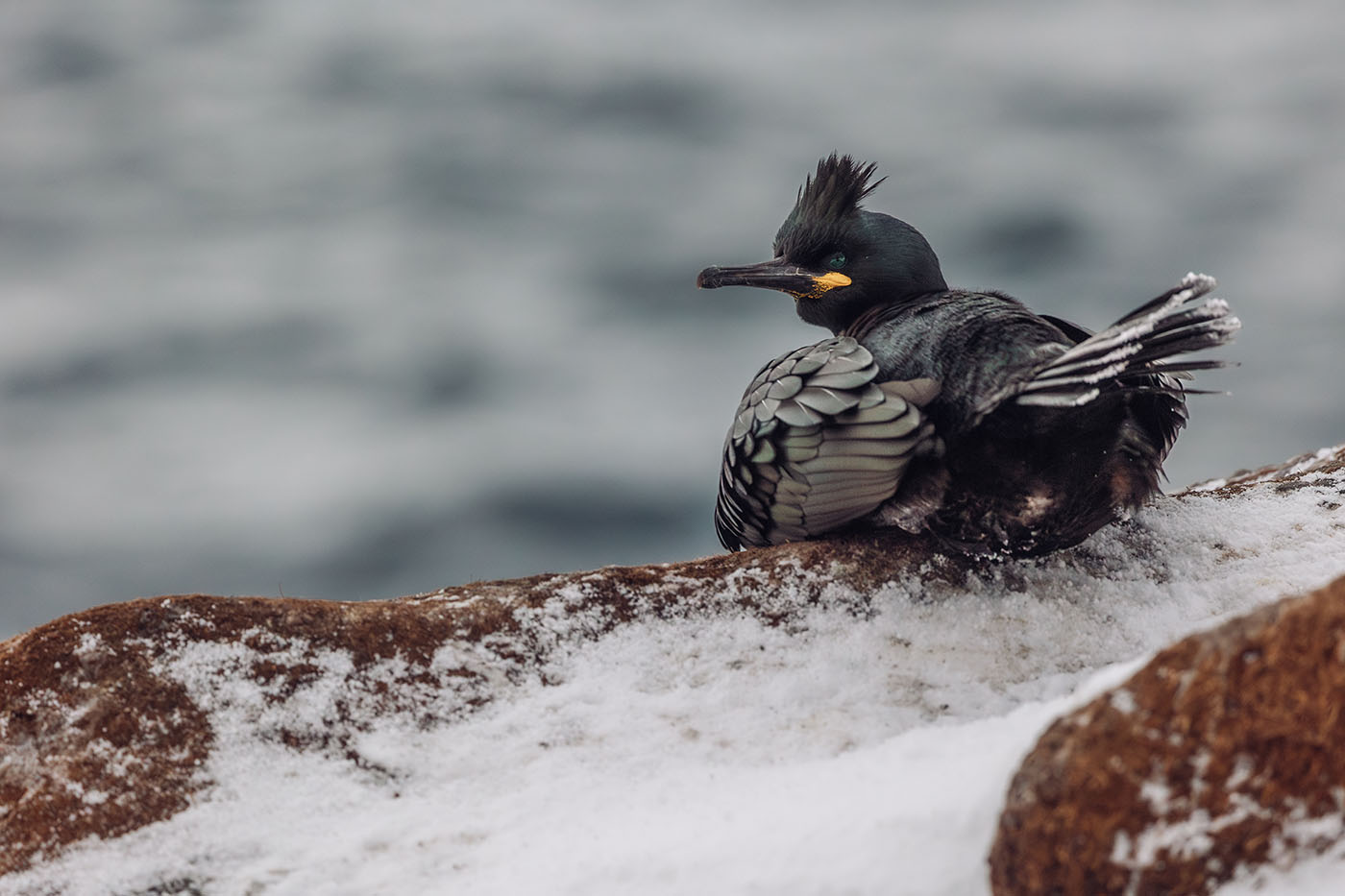 I took these photos in winter on Hornøya Island near Vardø, where snow, strong winds, and the wild Arctic coast set the scene. Shags crowded the rocky cliffs, their dark shapes clear against the snowy rocks, while kittiwakes flew through the cold air above the sea. Seeing the birds shelter, rest, and take off in such tough conditions reminded me how resilient they are. These images show quiet moments of life carrying on at the edge of winter.