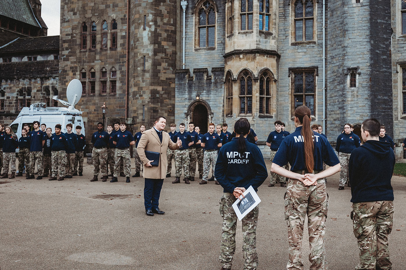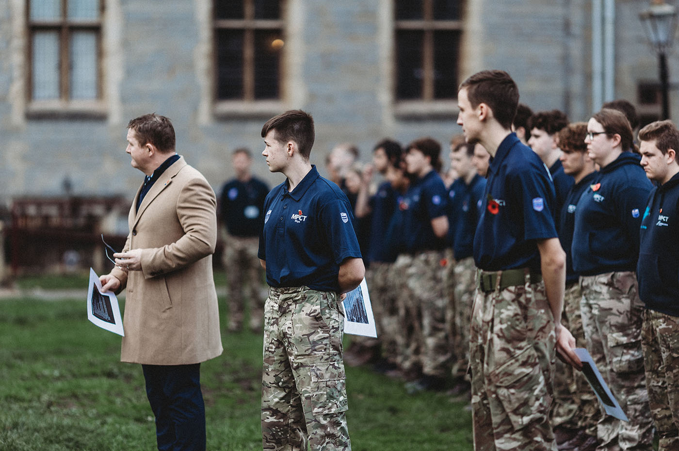 Photographed at Cardiff Castle during Remembrance, this event captured a moment of reflection and respect alongside MPCT learners and staff. Against the historic backdrop of the castle grounds, the focus stayed on ceremony, stillness and the quiet acts of remembrance, from learners standing in formation to the carefully placed crosses honouring service and sacrifice.