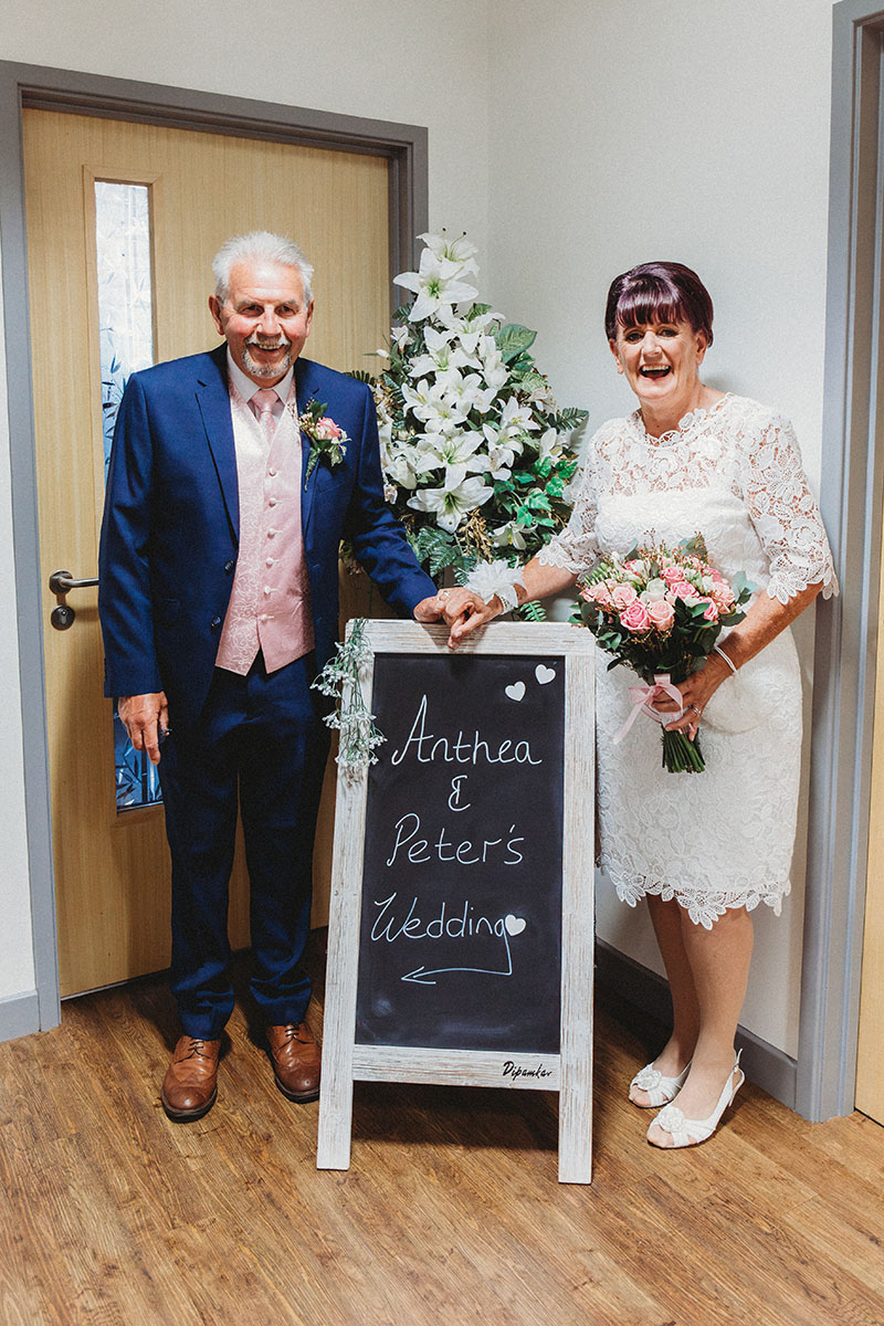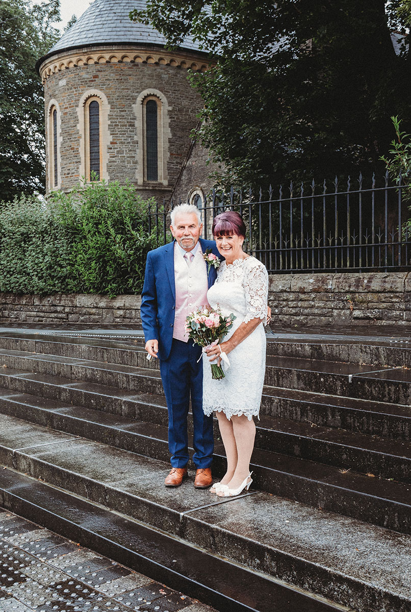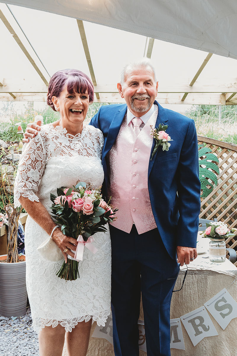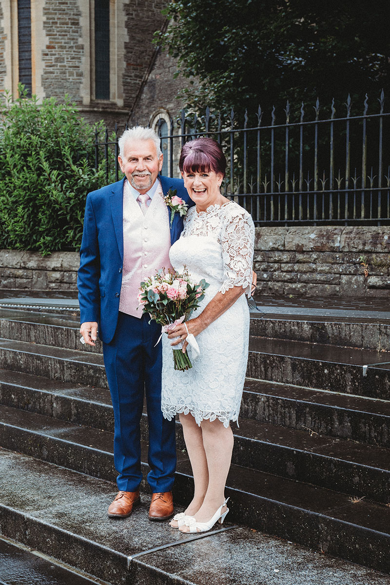 Yvonne looked stunning in her lace dress, with her bouquet of soft pink roses perfectly complementing Peter’s pastel waistcoat and navy suit. The ceremony was intimate and personal, with family gathered close to celebrate this special union.