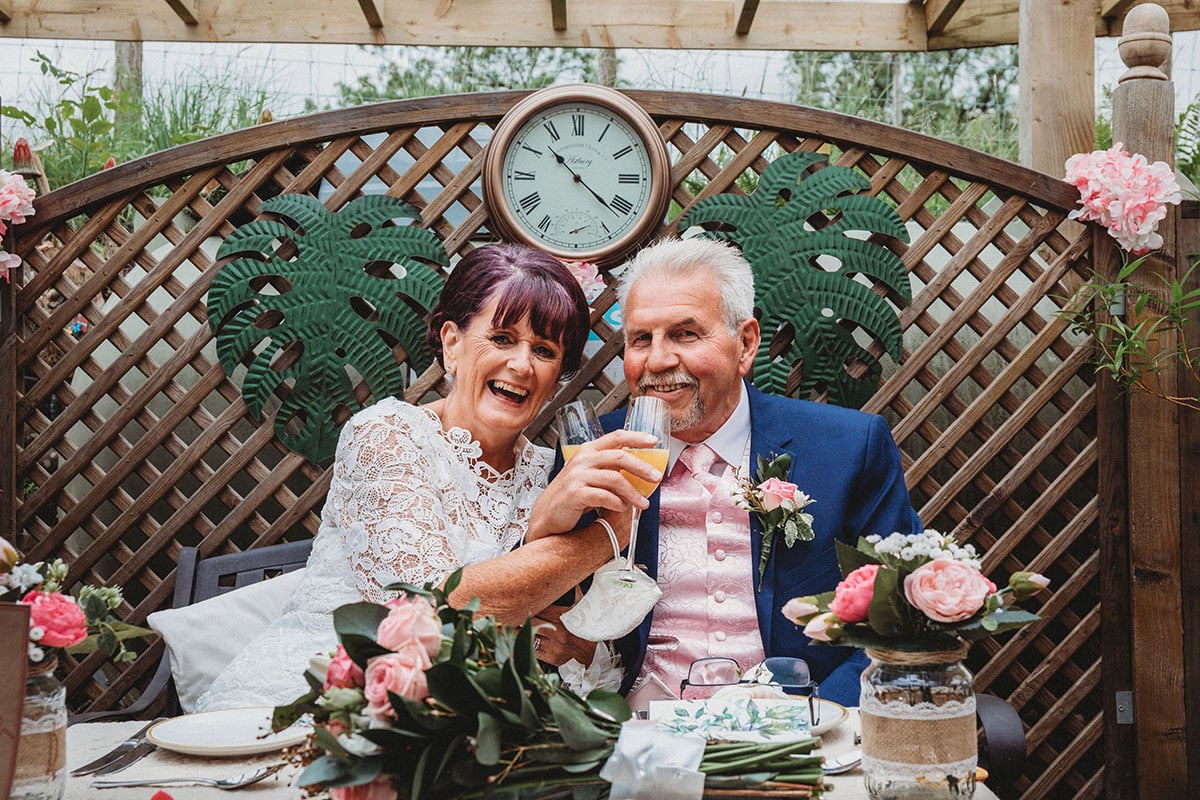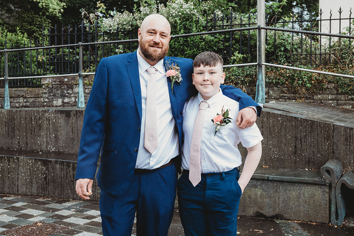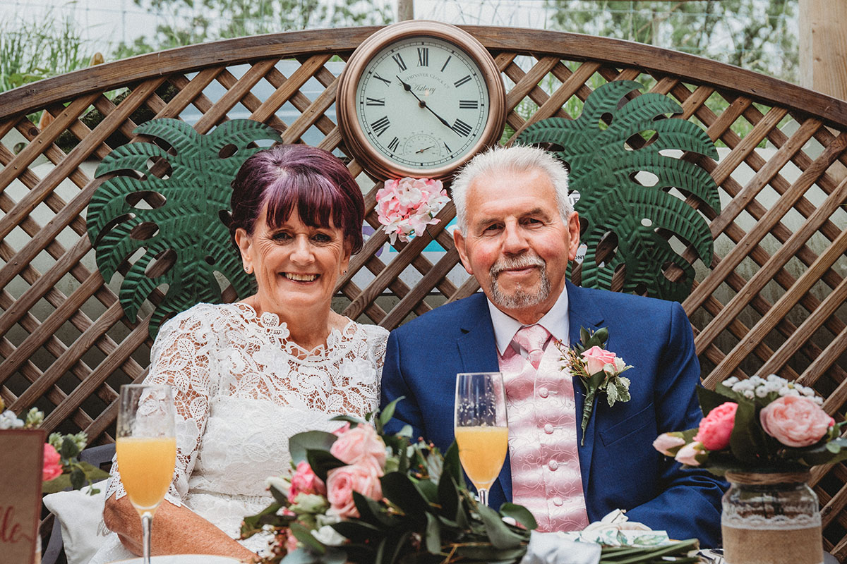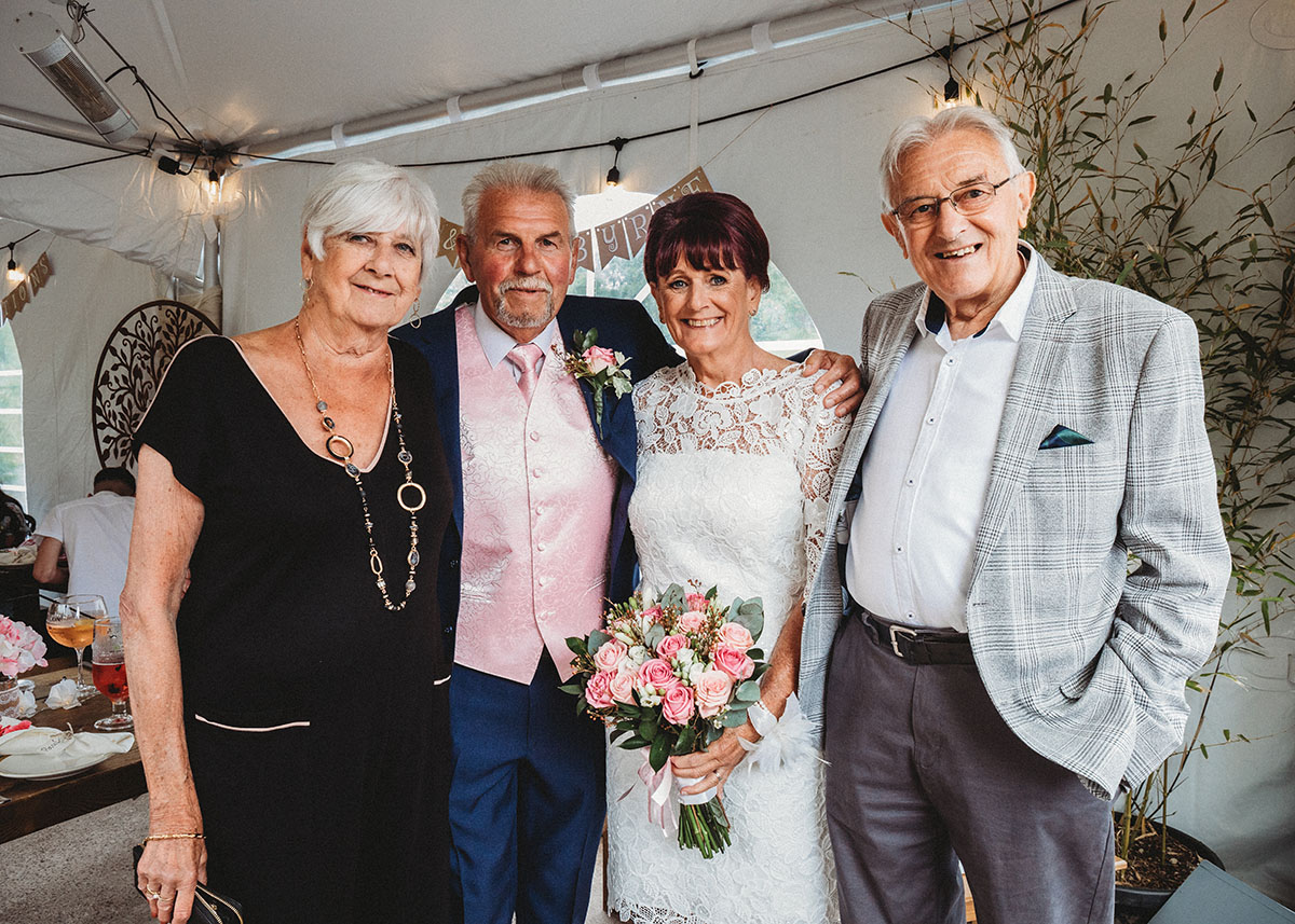 Yvonne looked stunning in her lace dress, with her bouquet of soft pink roses perfectly complementing Peter’s pastel waistcoat and navy suit. The ceremony was intimate and personal, with family gathered close to celebrate this special union.